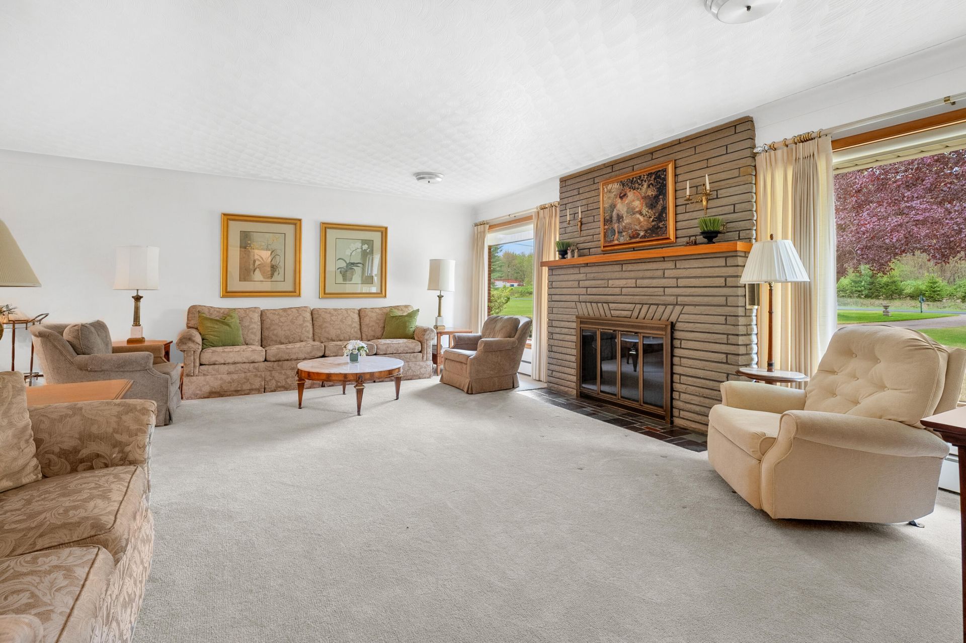 Set on over 11 scenic acres, this classic brick ranch offers the perfect blend of space, comfort, and opportunity. Lovingly maintained by its original owner, this home features a warm and inviting layout designed for everyday living and entertaining alike. The updated kitchen shines with refreshed countertops and crisp white cabinetry, creating a bright, timeless feel at the heart of the home. Enjoy peaceful mornings and relaxing evenings in the spacious four-season room, where panoramic views of the sprawling property bring the outdoors in. The finished basement provides additional living space with a fantastic floorplan--ideal for gatherings, hobbies, or a future refresh to match your personal style.With solid construction, a one-owner history, and endless potential both inside and out, this property offers a rare opportunity to own a private slice of countryside while still enjoying the comfort of a well-built home.