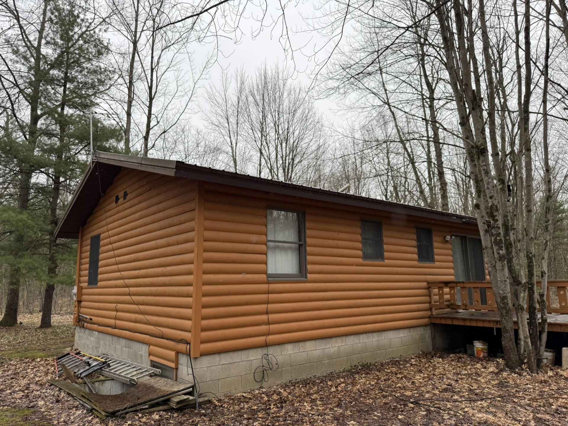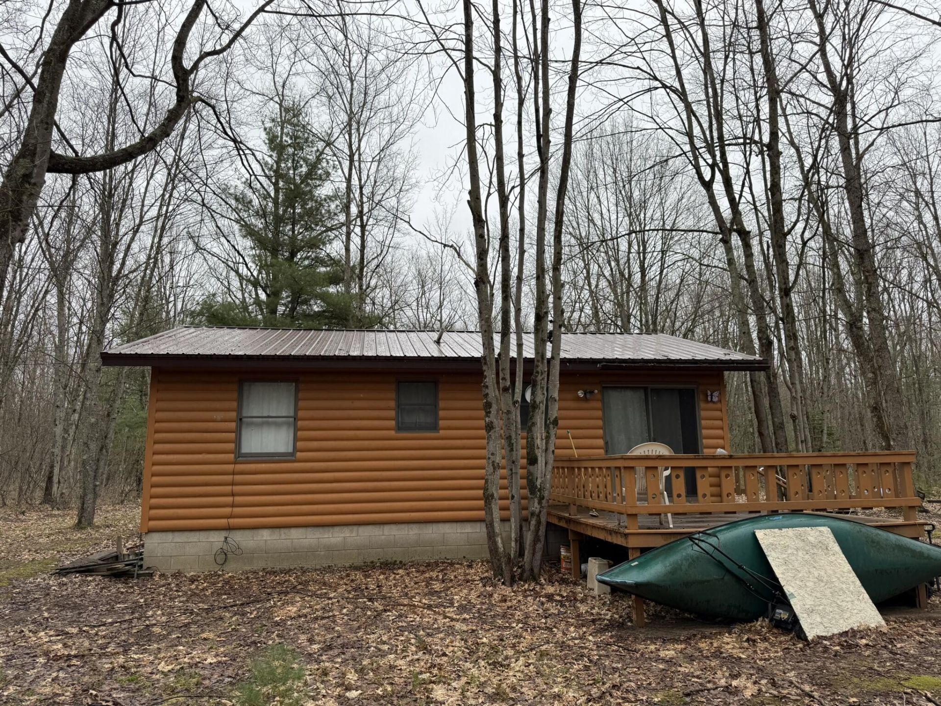 This amazing log sided cabin is situated in the middle of 6 nicely wooded acres in Brethren - and it borders Federal Land to the South and the West - great hunting property. The cabin features 2 bedrooms, an eat-in kitchen and a full basement for extra sleeping space or a wonderful family room! Finish it as you like! There is a large deck on the back of the cabin for quiet evening enjoyment. Located minutes from the Tippy Dam and the Big Manistee River, this is a great Up North getaway!