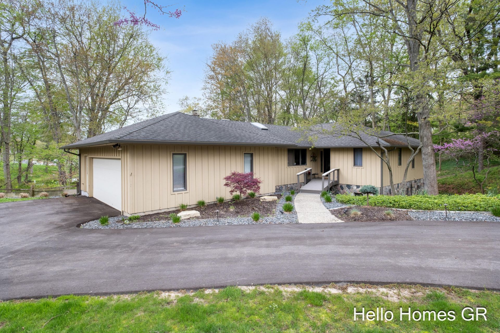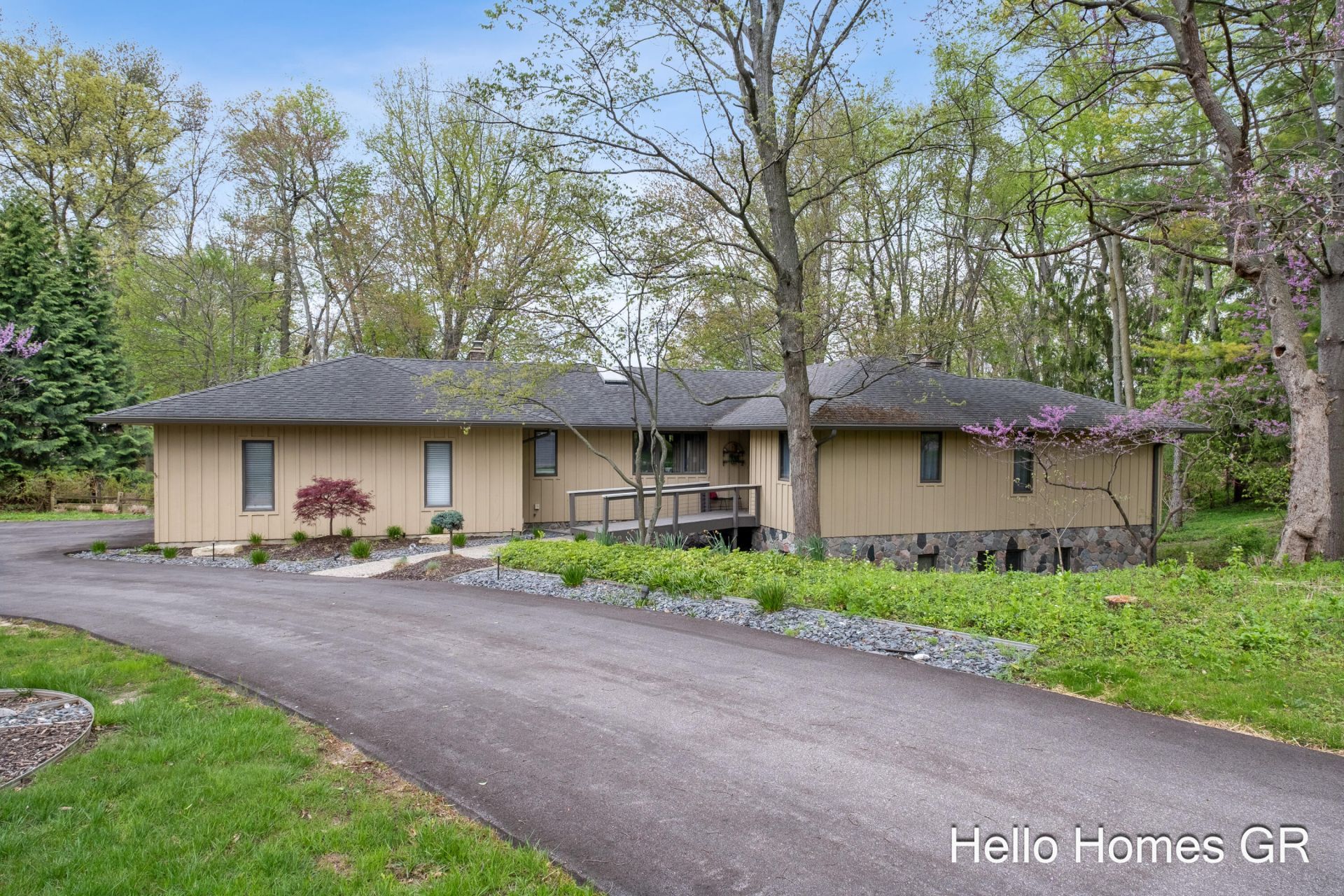 Say Hello! to this incredible 4 bedroom, 2.5 bath mid-century walkout ranch with private frontage on Walden Lake. This is a rare opportunity to own a home in one of the areas most prestigious and serene settings. Nestled among mature trees, this property offers the feeling of a secluded retreat while remaining just minutes from shopping, dining, schools, parks, and bike paths. Rich in character and thoughtfully designed for comfortable, modern living, the open-concept floor plan is enhanced by expansive windows that flood the home with natural light and showcase captivating lake views from nearly every room. The welcoming entry opens to a spacious living room anchored by a stunning floor-to-ceiling fieldstone gas fireplace, with sliders leading to a beautiful deck overlooking the backyard and water. The living space flows seamlessly into a bright, light-filled dining area and kitchen, featuring abundant cabinetry, generous counter space, and charming mid-century details. A lovely four-season sunroom with more sliders provides the perfect place to relax and take in lake views year-round. The main floor also offers a spacious primary suite with a private bath and ample closet space, along with a convenient main-floor laundry and half bath. The walkout lower level is ideal for entertaining or multi-generational living, complete with a large rec room featuring a second fireplace, a billiards area, and a convenient kitchenette. Three additional bedrooms and a full bath provide plenty of space for guests. Custom built-ins and abundant storage throughout add both function and charm. Sliders lead to an expansive deck, creating a seamless indoor-outdoor living experience. This space is an entertainers dream, featuring an outdoor kitchen, privacy wall, hot tub, and ample space to unwind while enjoying the peaceful, park-like setting and direct lake access. While much of the home retains its original mid-century charm, it offers a solid foundation and exceptional layout ready for your personal updates. This is a rare opportunity to own a one-of-a-kind waterfront oasis in the highly sought-after Forest Hills School District. Seller improvements include foundational and retaining wall repairs, and resurfaced driveway. Schedule your showing today!
