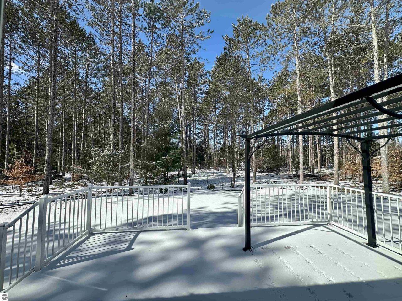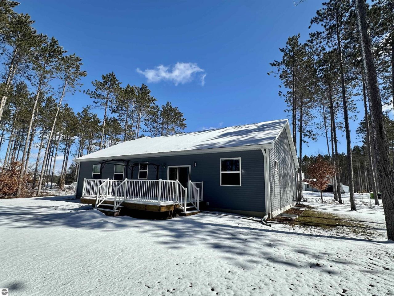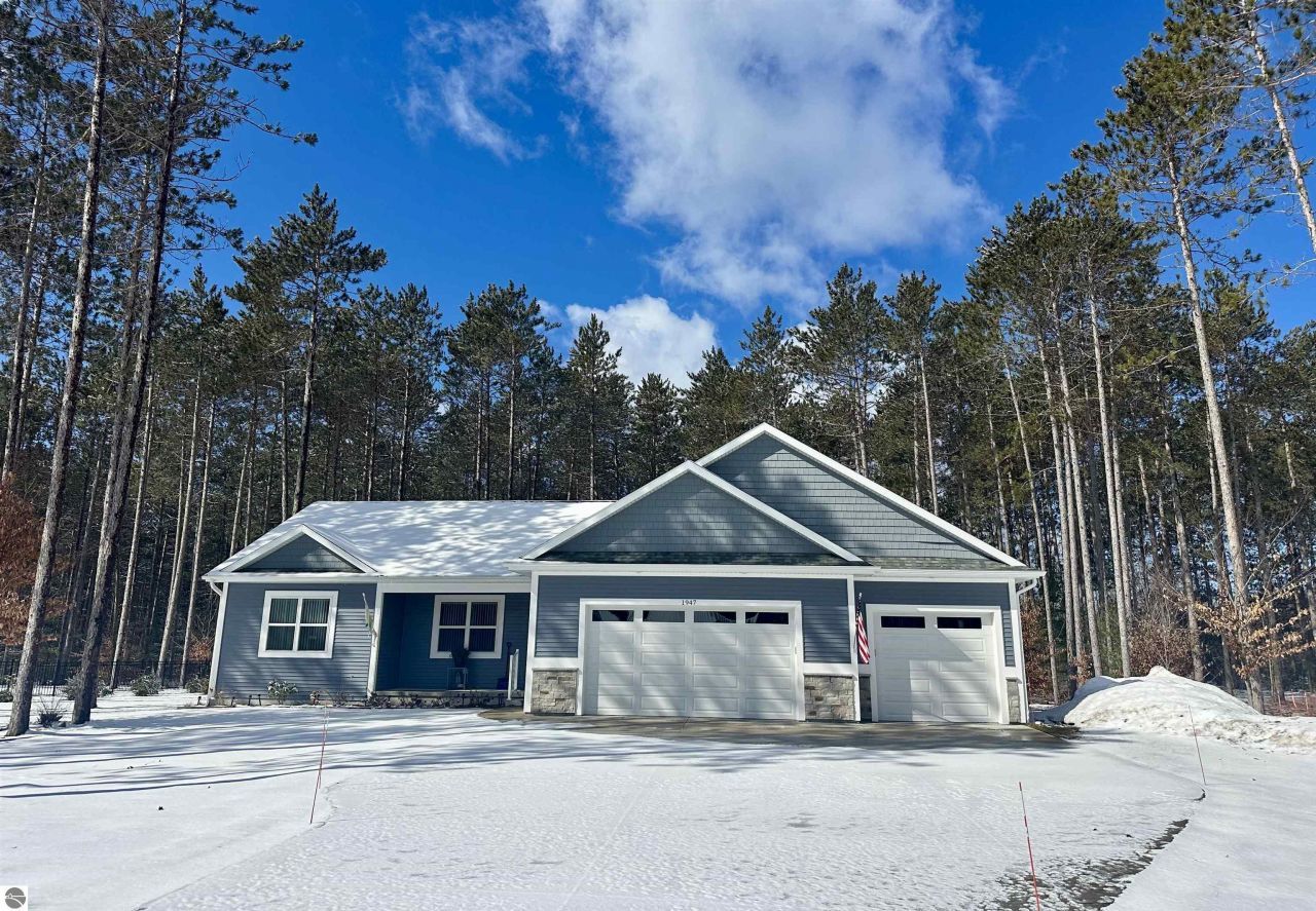 Stunning newer construction ranch built in 2023 featuring a fully finished lower level with full in-law suite completed in 2025, offering four bedrooms, three bathrooms, and just under 3,000 finished square feet of thoughtfully designed living space. The main floor showcases an open-concept layout with vaulted ceilings and abundant natural light, highlighted by a quartz kitchen and large island providing additional storage and gathering space. The private primary suite is situated on its own side of the home and features tray ceilings, a spacious walk-in closet, and a luxurious bathroom with double vanity and a tiled walk-in shower. Two additional bedrooms, a full bathroom, and convenient main-floor laundry complete the main level. The finished lower level expands the home with a massive family room flowing into a full second kitchen, along with a spacious fourth bedroom with walk-in closet and an oversized bathroom, creating ideal space for extended guests or multi-generational living. Situated on just under an acre and surrounded by mature hardwoods in a newer neighborhood with a shared path leading to a natural area, the property also features natural gas, a finished attached three-car garage, and a 12â?? x 20â?? composite deck with awning. Located just minutes from the Gilbert Park boat launch and only 20 minutes from Traverse City.