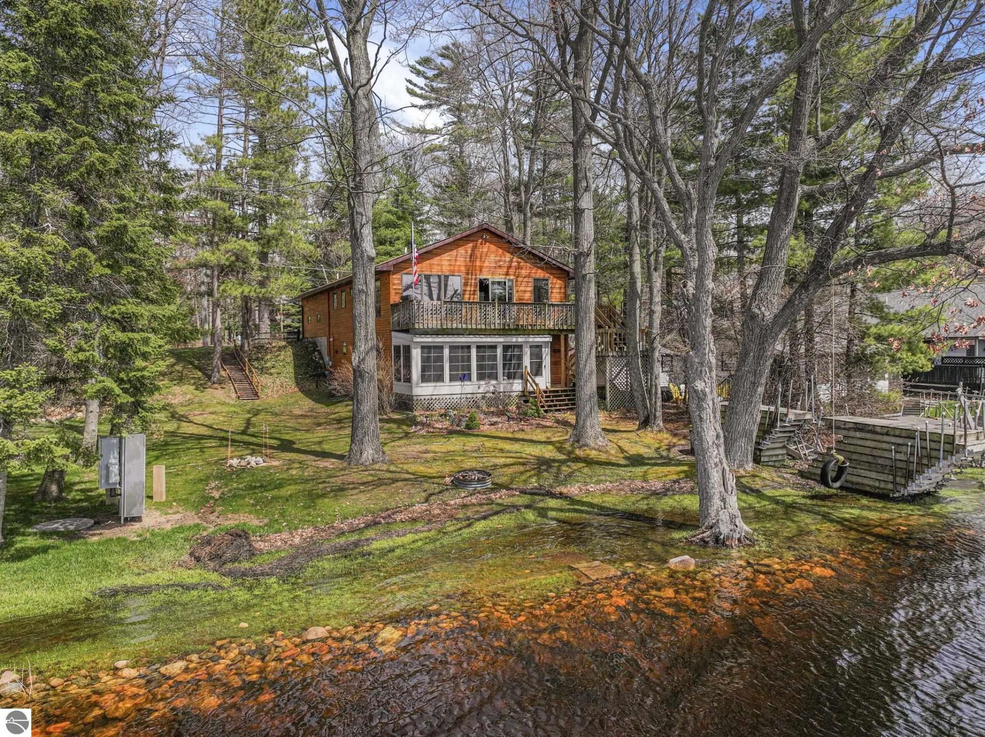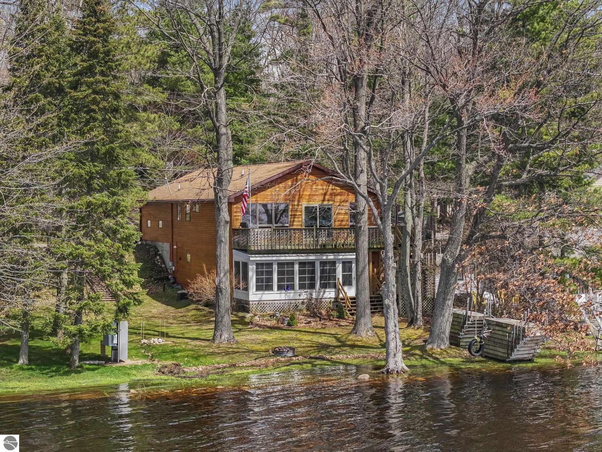 Flexible Lakefront Living with Room for Everyone! Enjoy 50 feet of private frontage on all-sports Lake Mitchell with a floor plan designed for todayâ??s evolving lifestyles. This custom built, one owner well-maintained waterfront home offers the rare advantage of multi-generational living potential with separate spaces on each level. Originally built to accommodate an in-home office in the lower level and living quarters up. Now in today's age, this floor plan expands a diverse opportunity depending on your particular living needs. The main floor features comfortable one-floor living with an open-concept great room, cathedral ceilings, generous kitchen, main-floor laundry (could be put back downstairs), two bedrooms including a primary suite with private bathroom. Enjoy the expansive windows that capture beautiful lake views. A lakeside elevated deck extends the living space outdoors for effortless entertaining or quiet relaxation. Extra cool perk - a natural gas grill! The finished walkout lower level adds incredible flexibility with its own private exterior entry, second kitchen, spacious family room, bedroom, bath and enclosed lakeside porch, making it ideal for extended family, guests, or private quarters with possible income-producing potential. The thoughtful layout allows shared connection or independent living arrangements (think extended family quarters or in-home health aide). Additional amenities include an attached 2-car garage, wrap around porch, private dock, natural gas, central air, municipal sewer and a desirable sunrise side of Lake Mitchell setting yet close to Cadillac conveniences. Whether seeking a year-round residence, vacation retreat, or home that adapts to changing needs, this unique waterfront property offers versatility, comfort, and lasting value. Link to Lake Mitchell Property Owners Association - "https://lakemitchellpo.com" Link to Lake Mitchell Sewer Assessment -"https://share.google/0T3WoMmG0atd0Aidw"
