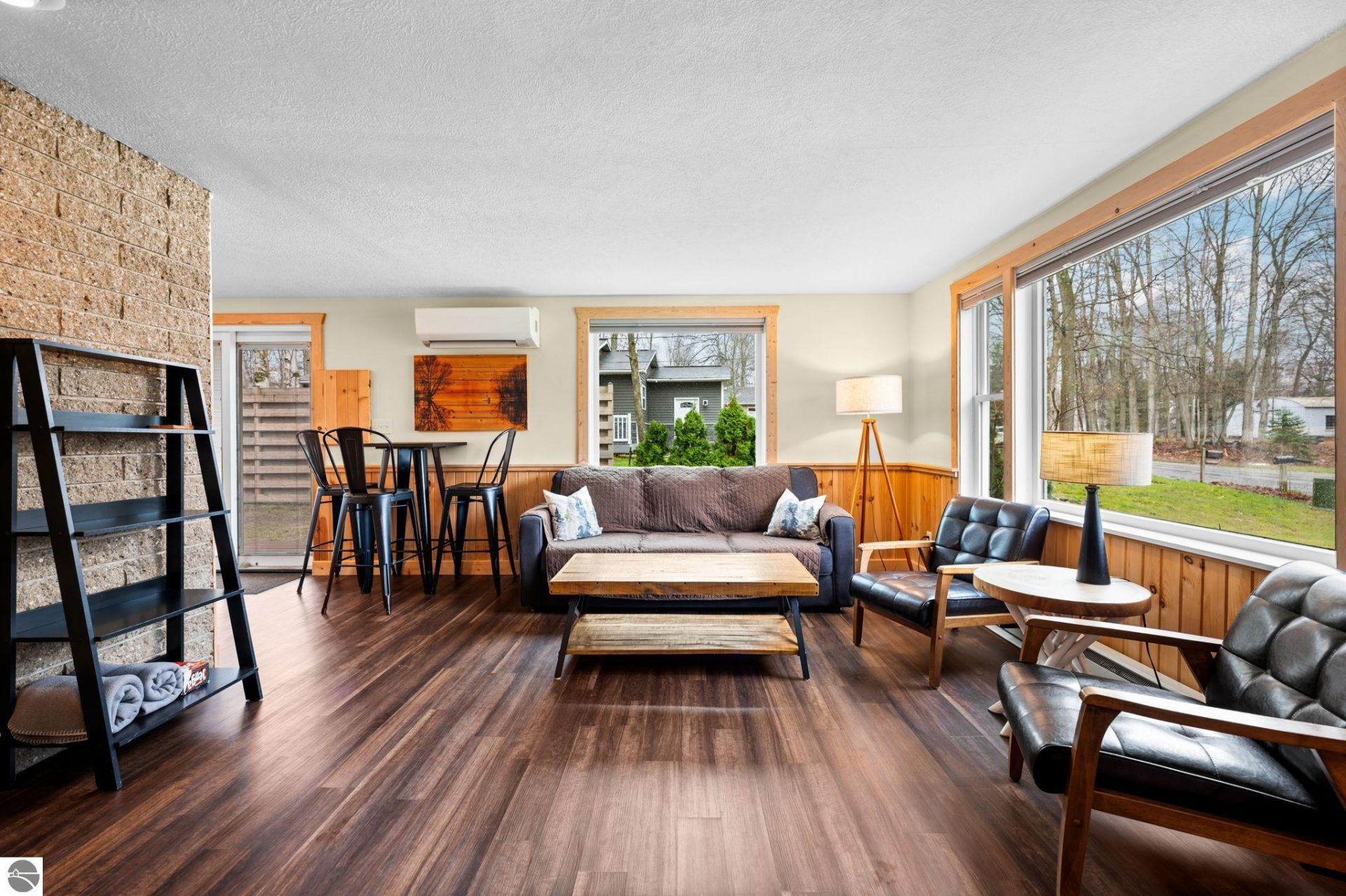 Tucked into a peaceful setting within the highly desirable Duck Lake Peninsular Shores Association, 3925 White Birch Drive offers a thoughtfully updated take on classic Up North living. This charming 2-bedroom, 1-bath home has been extensively renovated from the studs out. Major improvements include all-new windows and doors, updated electrical and plumbing, a high-efficiency mini-split for heating and cooling, and a fully encapsulated crawl space. The result is a home that feels genuinely fresh, efficient, and completely move-in ready. Warm interior finishes, custom cabinetry, and LVP flooring throughout give the space a polished yet relaxed feel, while natural light keeps everything bright and inviting. Out back, the deck and patio are perfect for entertaining or unwinding after a day on the water, with a partially fenced yard adding a nice touch of privacy. Best of all, this home is being sold fully furnished and equipped. It is entirely turnkey, making it ideal for mid-to-long-term rentals (31+ days) or simply moving right in without the hassle. The neighborhood amenities in the vibrant Duck Lake Peninsular Shores Association (DLPSA) community are truly exceptional. Residents enjoy exclusive access to 480 feet of shared Duck Lake frontage spread across five private sandy beach access sites, complete with a private boat launch. The beautiful central park is a hub of activity, featuring a pavilion, playground, tennis and basketball courts, shuffleboard, and a community activity locker fully equipped for pickleball, volleyball, and more. With a welcoming HOA that hosts year-round community events, plus an ideal location near the Interlochen Arts Academy and just minutes from Traverse City, you get the ultimate Up North recreation experience right outside your door. Schedule your tour today to experience the craftsmanship of this unique retreat firsthand!